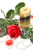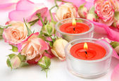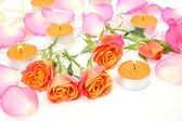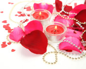 płatki róż i świece