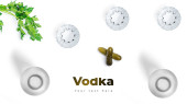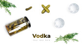 Kompozycja z kieliszek wódki i przekąski na kolor płyty, na czarnym tle