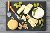 Martwa natura z produktów mlecznych i chleb na drewnianym stole