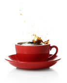 filiżanka kawy z splash, na białym tle