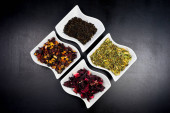 filiżanka herbaty z aromatyczne herbaty suchej miski na białym tle