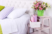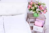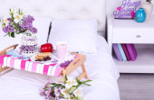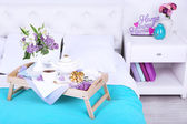 kubki kawy na wygodnym łóżku miękkie poduszki