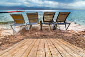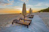 krzesła na plaży o zachodzie słońca, phuket Tajlandia.