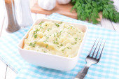 pyszne puree z zielonych w misce na stół szczegół