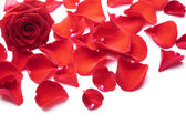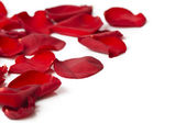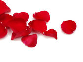piękne czerwone płatki róż, na białym tle