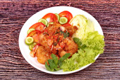 Zdjęcie "Głęboko smażone krewetki z Green papaya " może być wykorzystywane do celów osobistych i komercyjnych zgodnie z warunkami zakupionej licencji Royalty-free. Obraz jest dostępny do pobrania w jakości wysokiej rozdzielczości do 5760x3840.
