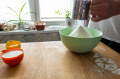 Zdjęcie "Dłoń kobiety wlewa mleko do miski. Przygotowanie ciasta na pierogi. Przepis krok po kroku do ciasta, pierogi." może być wykorzystywane do celów osobistych i komercyjnych zgodnie z warunkami zakupionej licencji Royalty-free. Obraz jest dostępny do pobrania w jakości wysokiej rozdzielczości do 5760x3840.