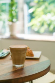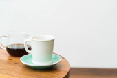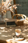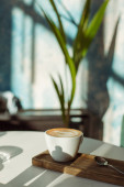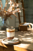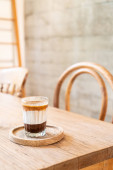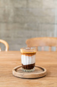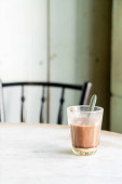 podwójny kubek brudnej kawy (kawa espresso z mlekiem i czekoladą) w kawiarni