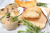 Świeży chleb z oliwą z oliwek i rozmarynem na drewnianym stole
