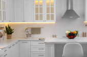 Zdjęcie "Różne świeże warzywa i grzyby na białym stole w nowoczesnej kuchni. Miejsce na tekst" może być wykorzystywane do celów osobistych i komercyjnych zgodnie z warunkami zakupionej licencji Royalty-free. Obraz jest dostępny do pobrania w jakości wysokiej rozdzielczości do 5760x3840.