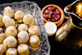 Filiżanka kawy i tureckie wypieki na ciemnej powierzchni