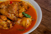 Zdjęcie "Kurczak Rendang jest tradycyjne jedzenie Malezji. Jego często gotowane podczas festiwali malajskich. Kurczak rendang jest wolno gotowane i duszone w sosie rendang mieszanki przypraw i mleka kokosowego." może być wykorzystywane do celów osobistych i komercyjnych zgodnie z warunkami zakupionej licencji Royalty-free. Obraz jest dostępny do pobrania w jakości wysokiej rozdzielczości do 5760x3840.