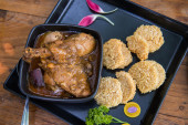 Zdjęcie "Kurczak Rendang jest tradycyjne jedzenie Malezji. Jego często gotowane podczas festiwali malajskich. Kurczak rendang jest wolno gotowane i duszone w sosie rendang mieszanki przypraw i mleka kokosowego." może być wykorzystywane do celów osobistych i komercyjnych zgodnie z warunkami zakupionej licencji Royalty-free. Obraz jest dostępny do pobrania w jakości wysokiej rozdzielczości do 5760x3840.