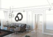 Zdjęcie "wizualizacja wnętrza, ilustracja 3D" może być wykorzystywane do celów osobistych i komercyjnych zgodnie z warunkami zakupionej licencji Royalty-free. Obraz jest dostępny do pobrania w jakości wysokiej rozdzielczości do 5760x3840.