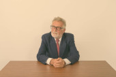 Zdjęcie "Studio shot przystojnego starszego brodatego biznesmena myśląc i trzymając filiżankę kawy siedząc na drewnianym stole na białym tle" może być wykorzystywane do celów osobistych i komercyjnych zgodnie z warunkami zakupionej licencji Royalty-free. Obraz jest dostępny do pobrania w jakości wysokiej rozdzielczości do 5760x3840.