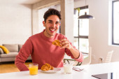 Zdjęcie "Młody mężczyzna w stroju domowym stojący w kuchni z filiżanką kawy w dłoni" może być wykorzystywane do celów osobistych i komercyjnych zgodnie z warunkami zakupionej licencji Royalty-free. Obraz jest dostępny do pobrania w jakości wysokiej rozdzielczości do 5760x3840.