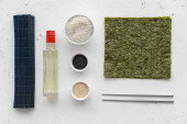 Skład z octem ryżowym na jasnym tle