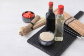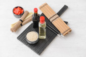 Zdjęcie "Skład z octem ryżowym na drewnianym tle" może być wykorzystywane do celów osobistych i komercyjnych zgodnie z warunkami zakupionej licencji Royalty-free. Obraz jest dostępny do pobrania w jakości wysokiej rozdzielczości do 5760x3840.