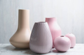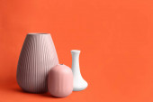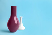 Stylowe puste ceramiczne wazony na jasnoniebieskim tle
