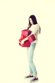 młoda kobieta dorywczo gospodarstwa czas prezentów.