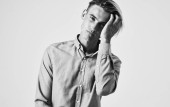 przystojny mężczyzna w koszuli na lekkim tle Kopiuj przestrzeń przycięty widok