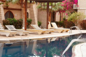 Duży basen na dachu w luksusowym tropikalnym ośrodku hotelowym