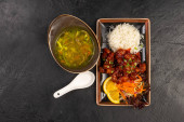 Zdjęcie "Miska wołowiny. Gotowana wołowina, ryż, cebula, ogórki, imbir, jajko. Hot danie główne mięso" może być wykorzystywane do celów osobistych i komercyjnych zgodnie z warunkami zakupionej licencji Royalty-free. Obraz jest dostępny do pobrania w jakości wysokiej rozdzielczości do 5760x3840.