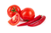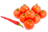 czerwone pomidory z papryki chłodno na białym tle na biały deseń