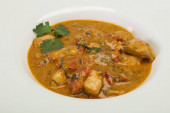 Tradycyjna tajska zupa z kurczaka curry z mlekiem kokosowym