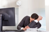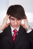mylić biznesmen ciągnięcie włosy podczas obliczania finansów