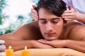 Zdjęcie "mężczyzna odbiera masaż głowy z masażu w spa" może być wykorzystywane do celów osobistych i komercyjnych zgodnie z warunkami zakupionej licencji Royalty-free. Obraz jest dostępny do pobrania w jakości wysokiej rozdzielczości do 5760x3840.