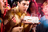 kobieta obchodzi urodziny z przyjaciółmi w nocnym klubie
