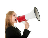 kobieta krzyczy przez megafon