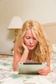 kobieta w łóżku z laptopa