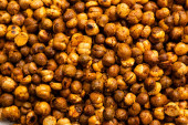 Zdjęcie "Pikantne chrupiące pieczone lub smażone ciecierzyca lub futana z papryką, selektywne skupienie. Smaczne popularne wegetariańskie przekąski lub boczne danie lub czakna spożywane z napojami koktajlowymi" może być wykorzystywane do celów osobistych i komercyjnych zgodnie z warunkami zakupionej licencji Royalty-free. Obraz jest dostępny do pobrania w jakości wysokiej rozdzielczości do 5760x3840.