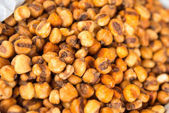 Pikantne chrupiące pieczone lub smażone ciecierzyca lub futana z papryką, selektywne skupienie. Smaczne popularne wegetariańskie przekąski lub boczne danie lub czakna spożywane z napojami koktajlowymi