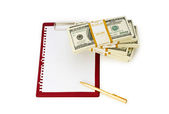 Koncepcja Biznesowa - pióro i notebook ponad dolarów