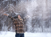 Zdjęcie "Młoda kobieta w zimowym parku w śniegu. Kobieta bawiąca się zimową przyrodą. Zimowy portret zabawnej kobiety w wełnianym kapeluszu i ciepłym szaliku rzucającej śniegiem w zimowym parku, latające płatki śniegu." może być wykorzystywane do celów osobistych i komercyjnych zgodnie z warunkami zakupionej licencji Royalty-free. Obraz jest dostępny do pobrania w jakości wysokiej rozdzielczości do 5760x3840.