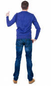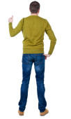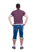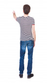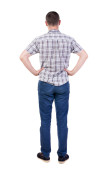 młody człowiek patrzy na białym tle. widok z tyłu.