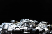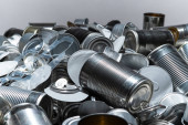 Zdjęcie "Metalowe puszki, puszki i śmieci ze słoików na stole. Śmieci z aluminium. Puste zużyte odpady opakowaniowe i złom ze stali spożywczej i napojowej, sortowane i gotowe do recyklingu. " może być wykorzystywane do celów osobistych i komercyjnych zgodnie z warunkami zakupionej licencji Royalty-free. Obraz jest dostępny do pobrania w jakości wysokiej rozdzielczości do 5760x3840.