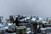 Zdjęcie "Recykling pustych puszek i cyny. Aluminiowe puszki po napojach i słoiki z jedzeniem. Sortowane metalowe śmieci i śmieci gotowe do recyklingu. Stalowe bzdury. Koncepcja katastrofalnego zanieczyszczenia środowiska odpadami spowodowanego apokalipsą. " może być wykorzystywane do celów osobistych i komercyjnych zgodnie z warunkami zakupionej licencji Royalty-free. Obraz jest dostępny do pobrania w jakości wysokiej rozdzielczości do 5760x3840.