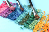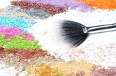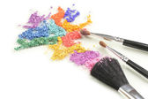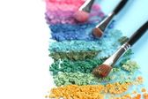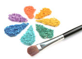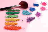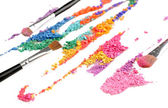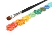 tęcza pokruszony cień do powiek i Pędzel profesjonalny makijaż na białym tle