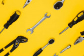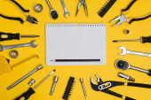 Zdjęcie "Zestaw różnych narzędzi budowlanych. Narzędzia do naprawy domu. Praca na budowie. Na żółtym tle. Płasko. Płaskowyż." może być wykorzystywane do celów osobistych i komercyjnych zgodnie z warunkami zakupionej licencji Royalty-free. Obraz jest dostępny do pobrania w jakości wysokiej rozdzielczości do 5760x3840.