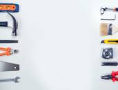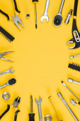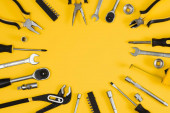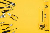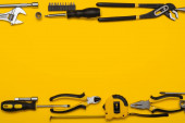 Żółte i czarne poręczne narzędzia (pilery i śrubokręt) izolowane na żółtym tle