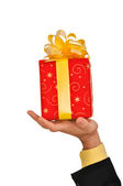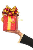 blond kaukaski kobieta w suknia z pudełka na białym tle