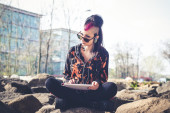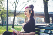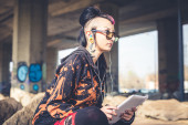 Zdjęcie "dziewczyna punk za pomocą tabletu" może być wykorzystywane do celów osobistych i komercyjnych zgodnie z warunkami zakupionej licencji Royalty-free. Obraz jest dostępny do pobrania w jakości wysokiej rozdzielczości do 5760x3840.