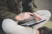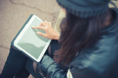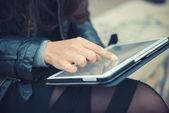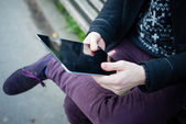 dziewczyna punk za pomocą tabletu