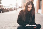 dziewczyna punk za pomocą tabletu