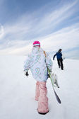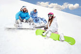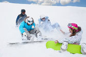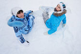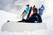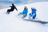 siedzą dwie osoby na śniegu i przygotowanie do jazdy