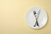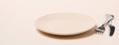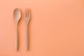Drewniana łyżka i nóż na białym tle, miejsce na tekst